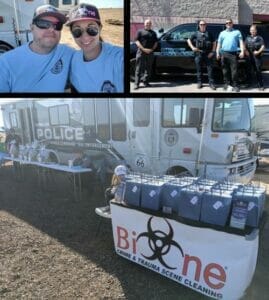 Joshua and Rebecca Wallace, owners of Bio-One Flagstaff and Bio-One Scottsdale celebrated National Thank A Police Officer Day this year. Here are they are spending time with their local law enforcement and handing out goodie bags as a thank you.